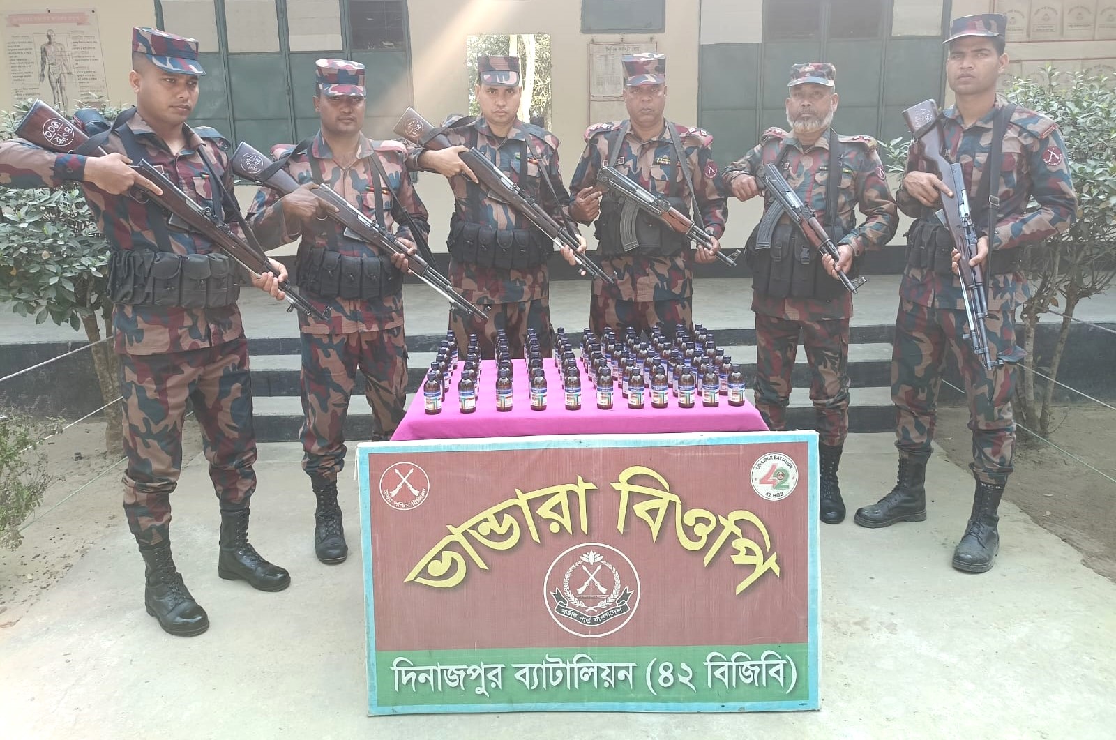 বিরলে ৭৬ বোতল ভারতীয় ফেন্সিডিল উদ্ধার